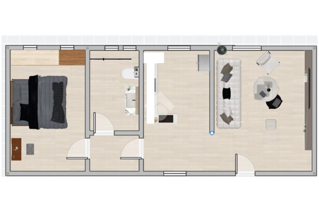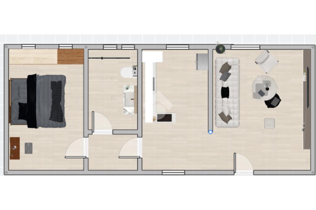 L’appartamento, completamente ristrutturato, si compone di soggiorno con accesso diretto dall'ingresso,dalla cucina abitabile,dal bagno e dalla camera da letto.