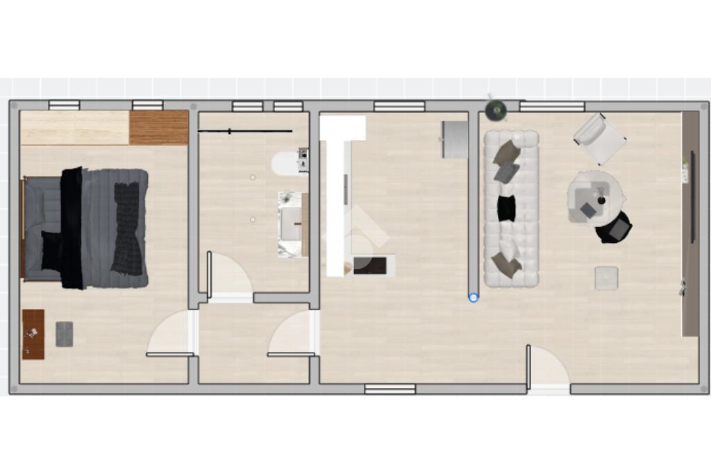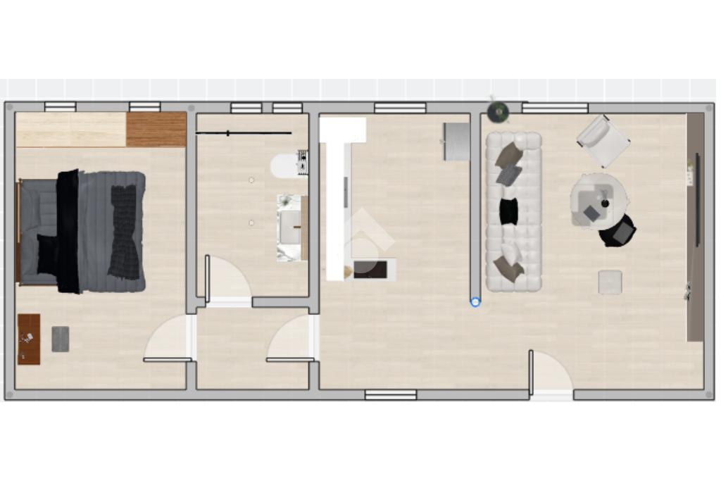 L’ingresso conduce direttamente nella zona giorno, dove troviamo un soggiorno adiacente alla cucina abitabile. La zona notte è composta da una spaziosa camera da letto e un bagno finestrato. L’immobile è stato completamente ristrutturato e si presenta in ottime condizioni.