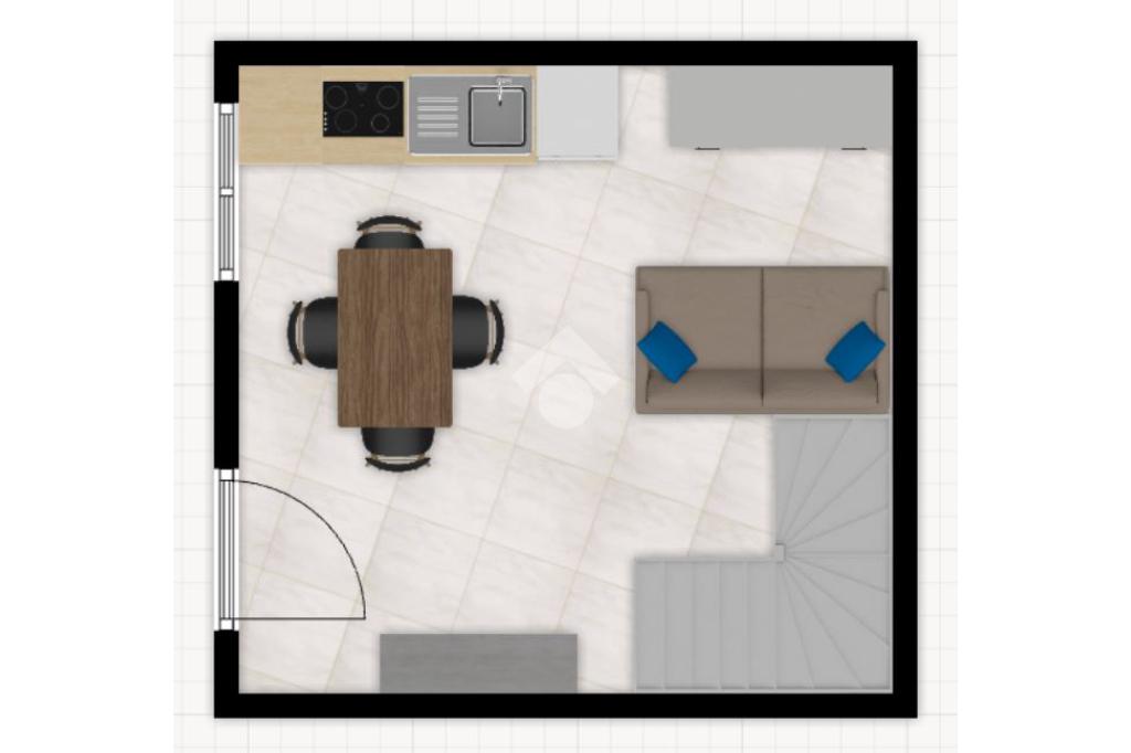 L’immobile, ristrutturato, è composto da soggiorno con cucina a vista al piano inferiore, mentre al piano superiore troviamo la camera da letto ed il bagno.