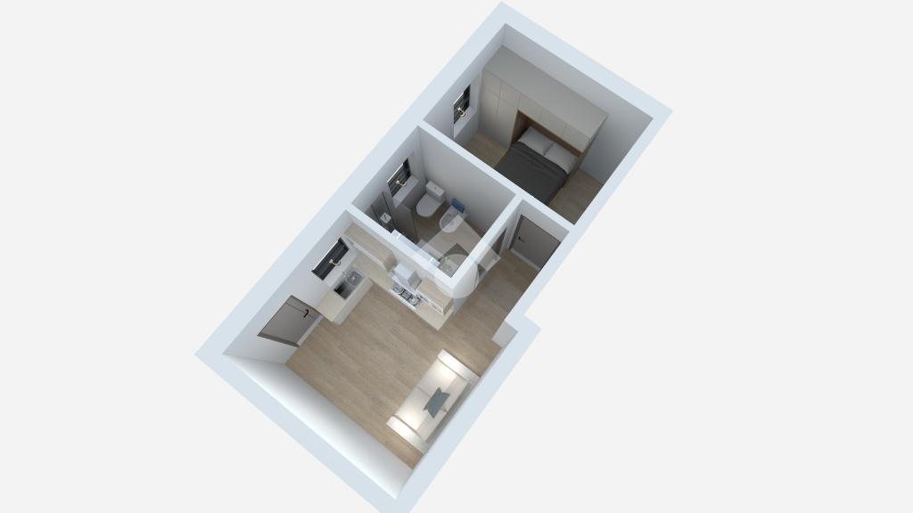 Adiacenti alla zona giorno troviamo la camera da letto ed il bagno finestrato.