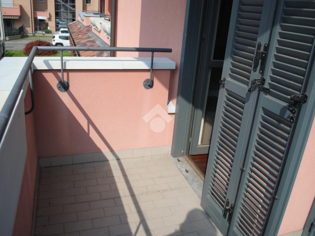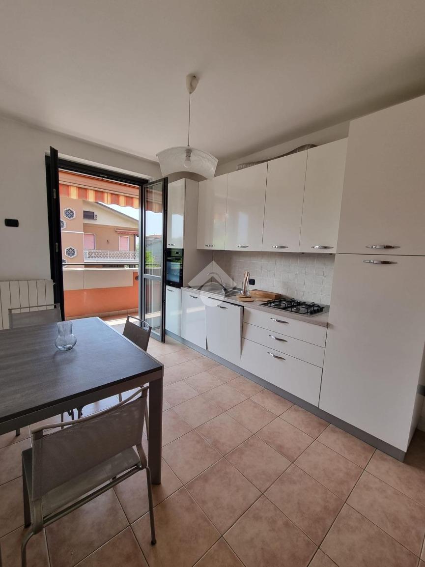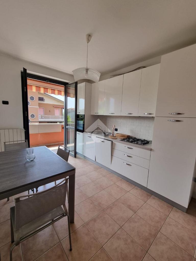 L'appartamento si apre su un ampio soggiorno, spazioso e luminoso, adiacente è posta la cucina abitabile. Entrambi gli ambienti affacciano su un balcone, che ospita anche un comodo ripostiglio esterno.