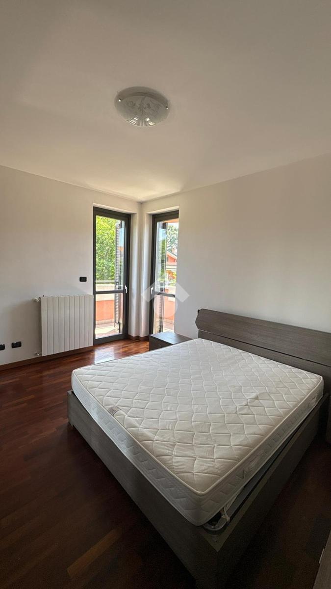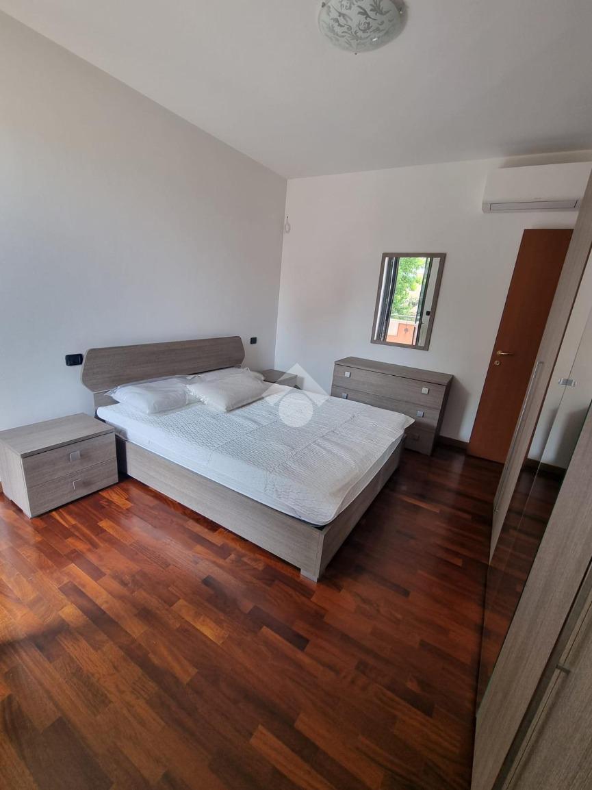 Un piccolo disimpegno conduce alla zona notte, composta da una camera da letto matrimoniale, anch’essa con accesso al balcone, e da un bagno finestrato.