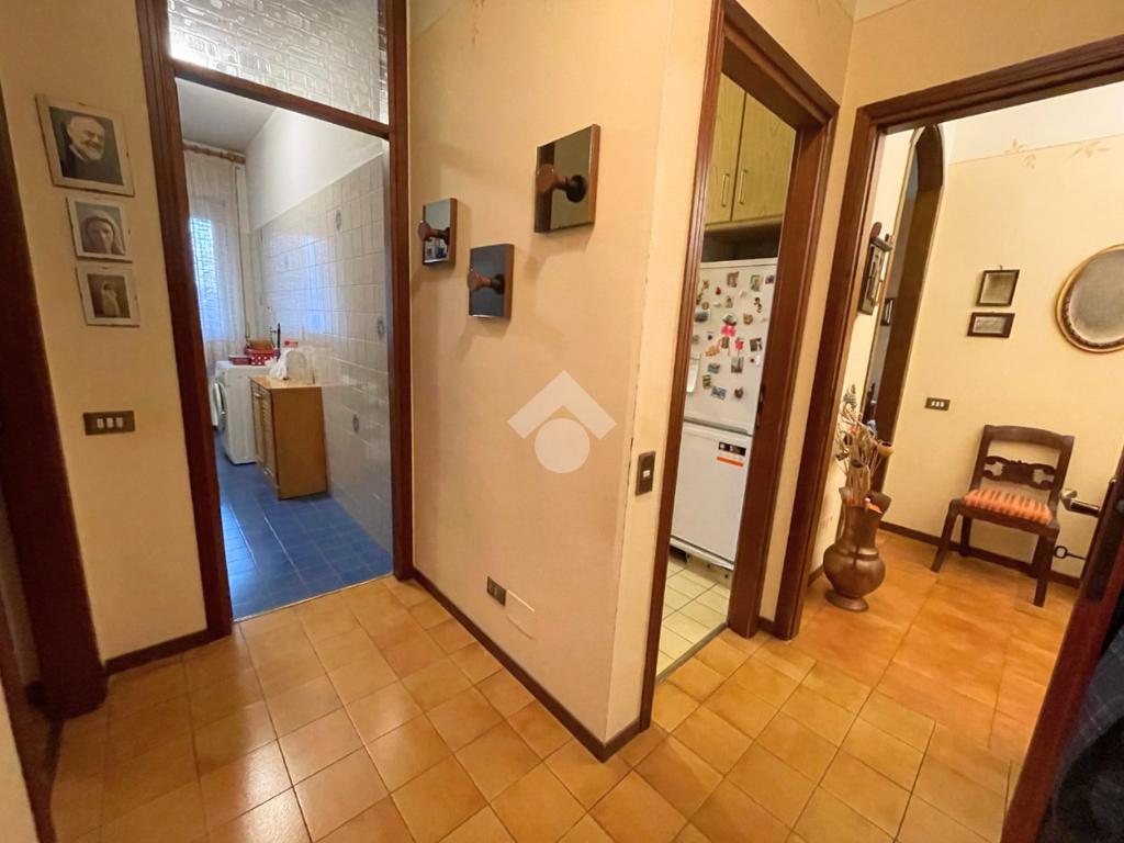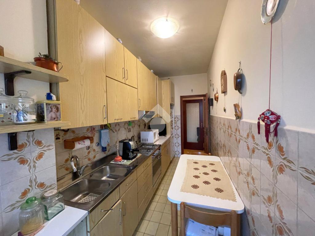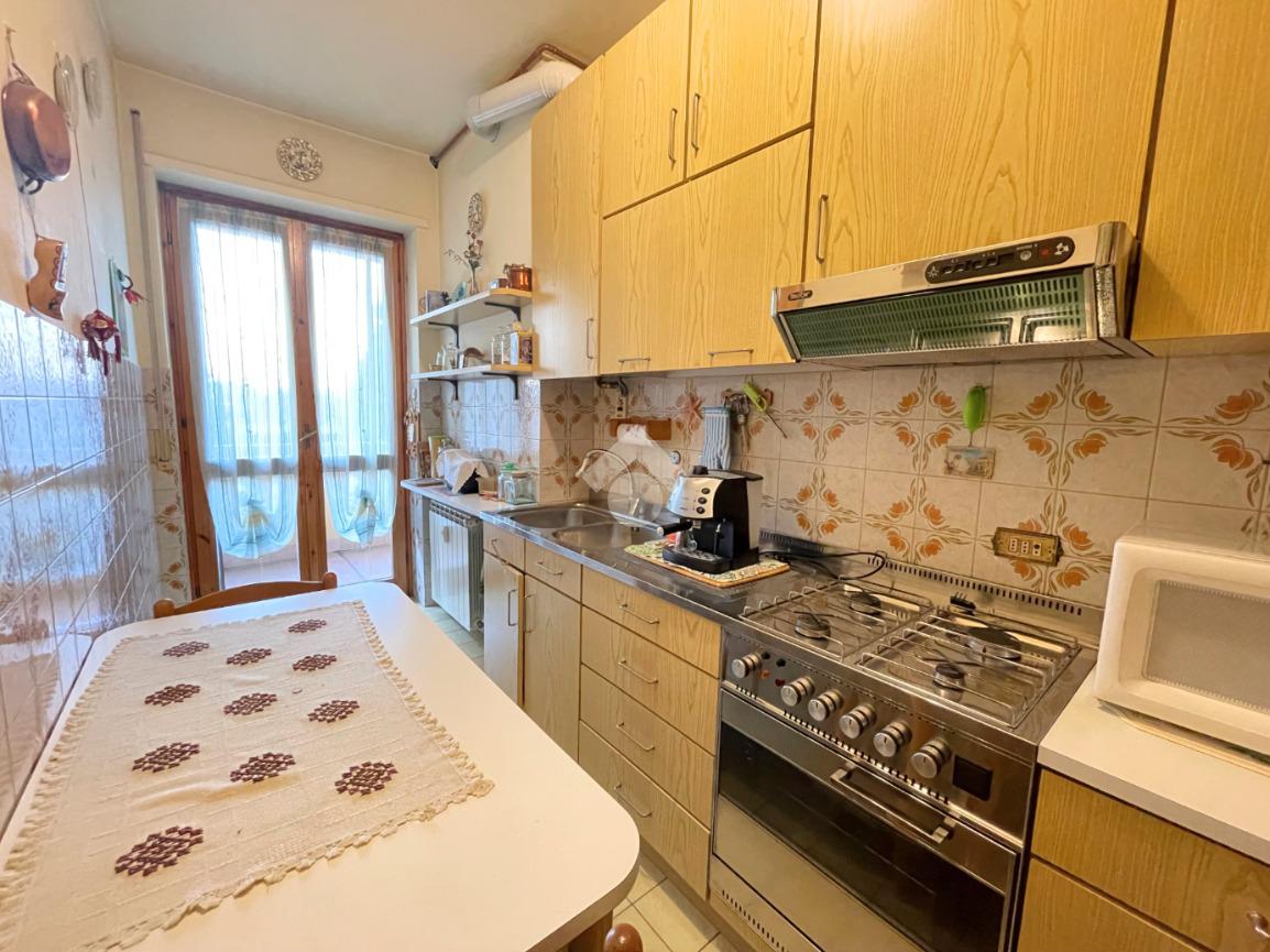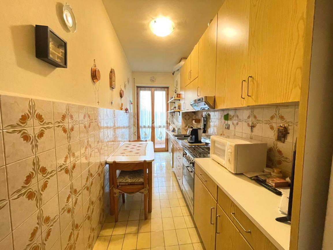 Un pratico disimpegno conduce alla cucina abitabile, alla spaziosa camera da letto, al bagno ed a un funzionale ripostiglio.