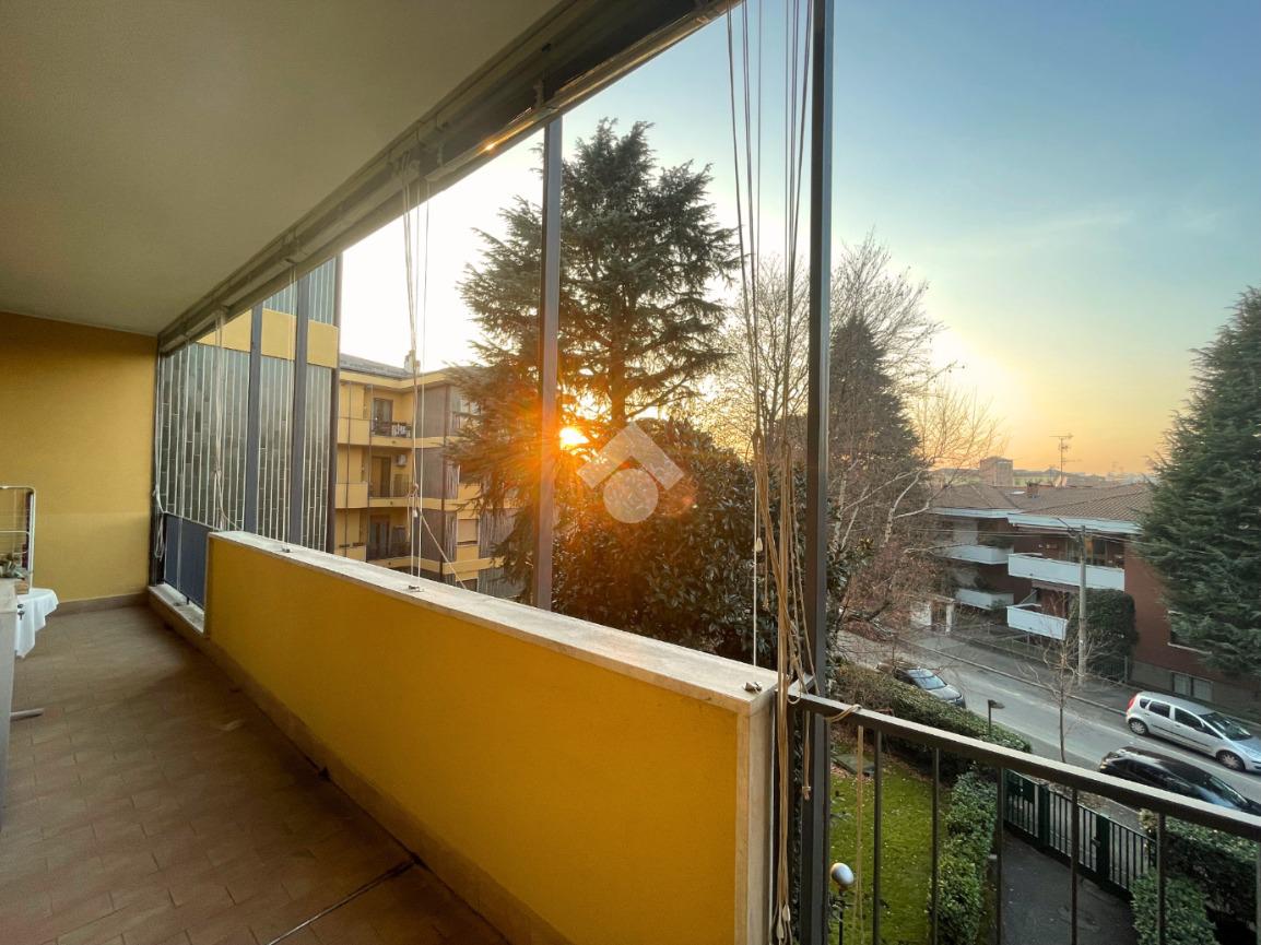 L’immobile, situato al terzo piano in palazzina in ottimo stato, si apre all' ampio ingresso che conduce alla zona giorno composta dal soggiorno luminoso con accesso diretto a un comodo balcone con affaccio al giardino condominiale.